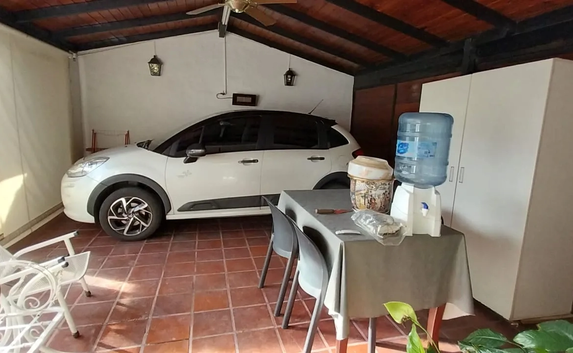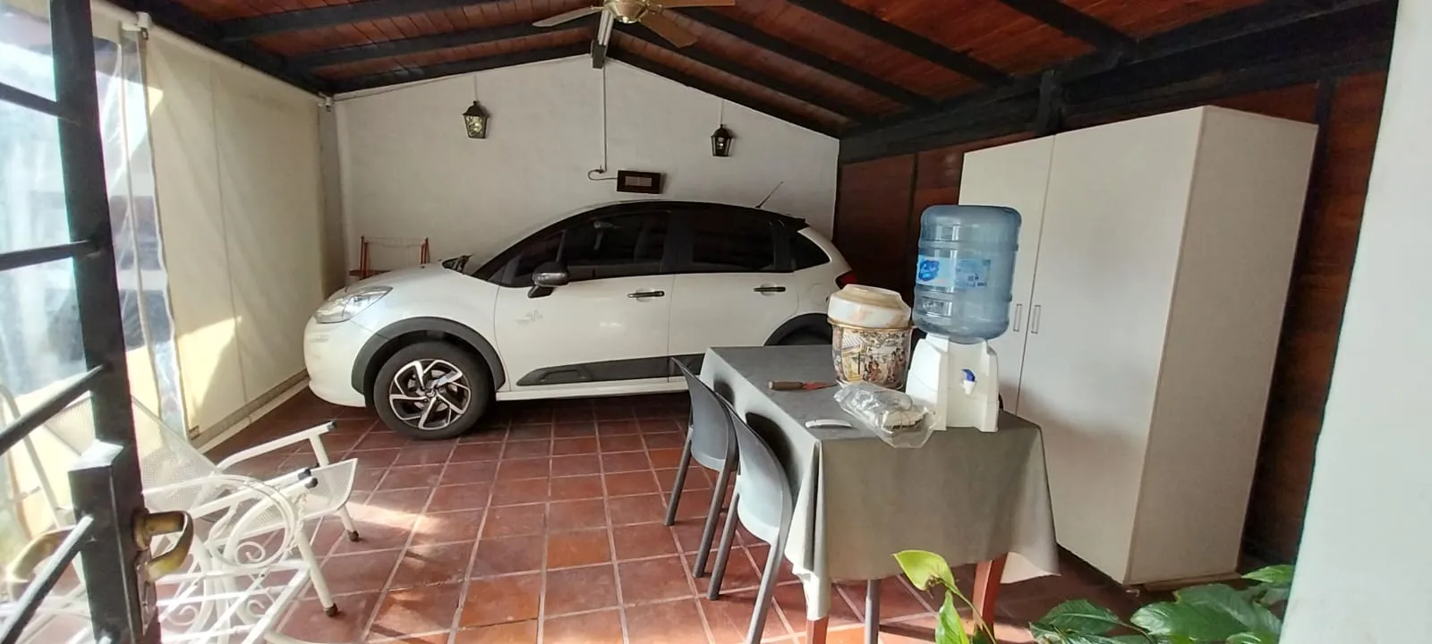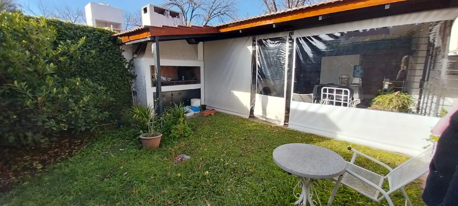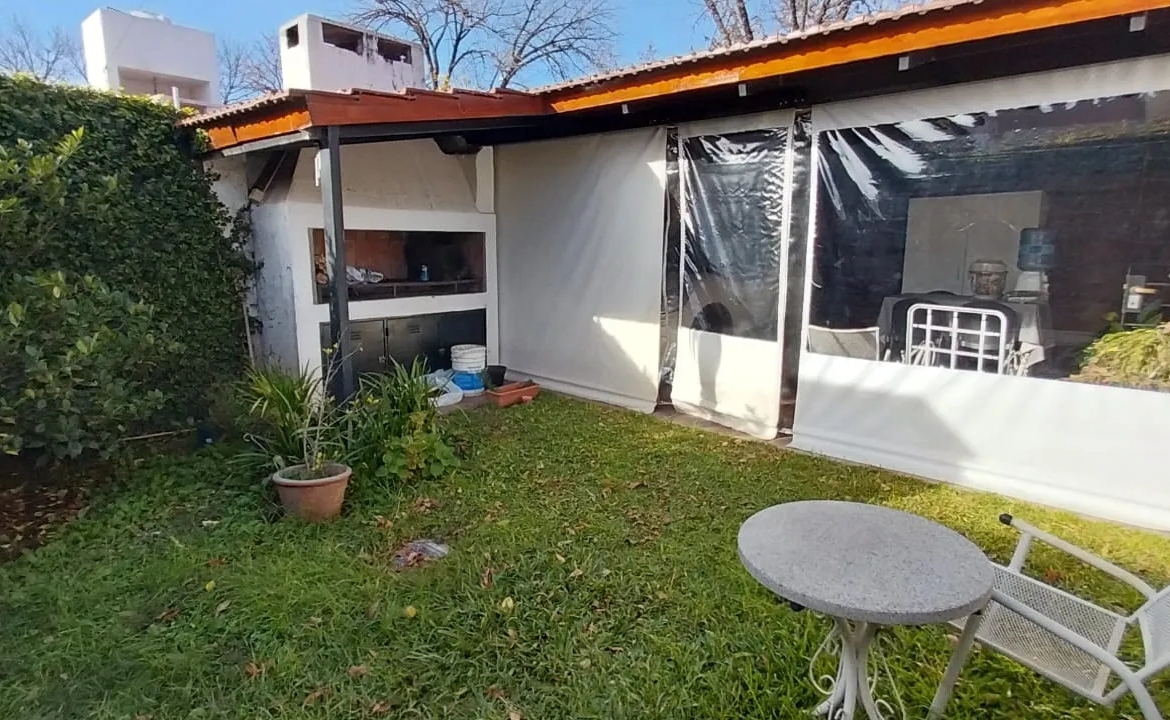 Quincho/cochera para dos autos en paralelo. Éste se encuentra calefaccionado y se integra al patio trasero.